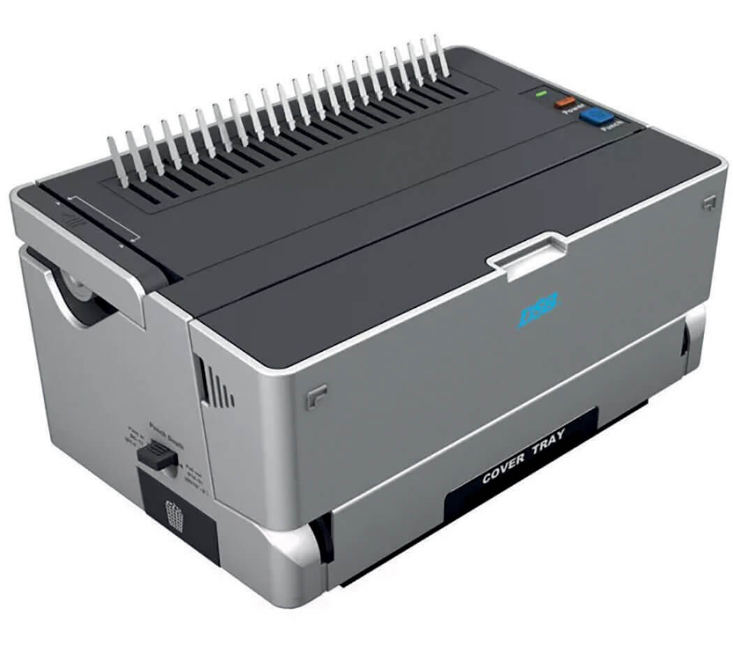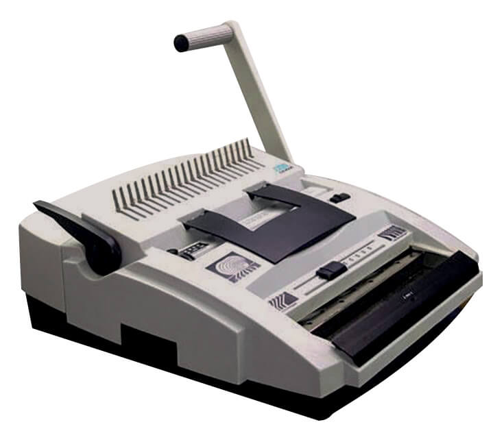 Elegantní a uživatelsky komfortní vázací stroj pro vázání dokumentů do plastových hřbetů. Stroj je obohacen o systém usnadňující děrování bez velké námahy. Je vybaven oddělenými pákami pro děrování a roztažení kroužku, měřidlem velikosti kroužku, nastavitelnou hloubkou okraje a postranního dorazu.